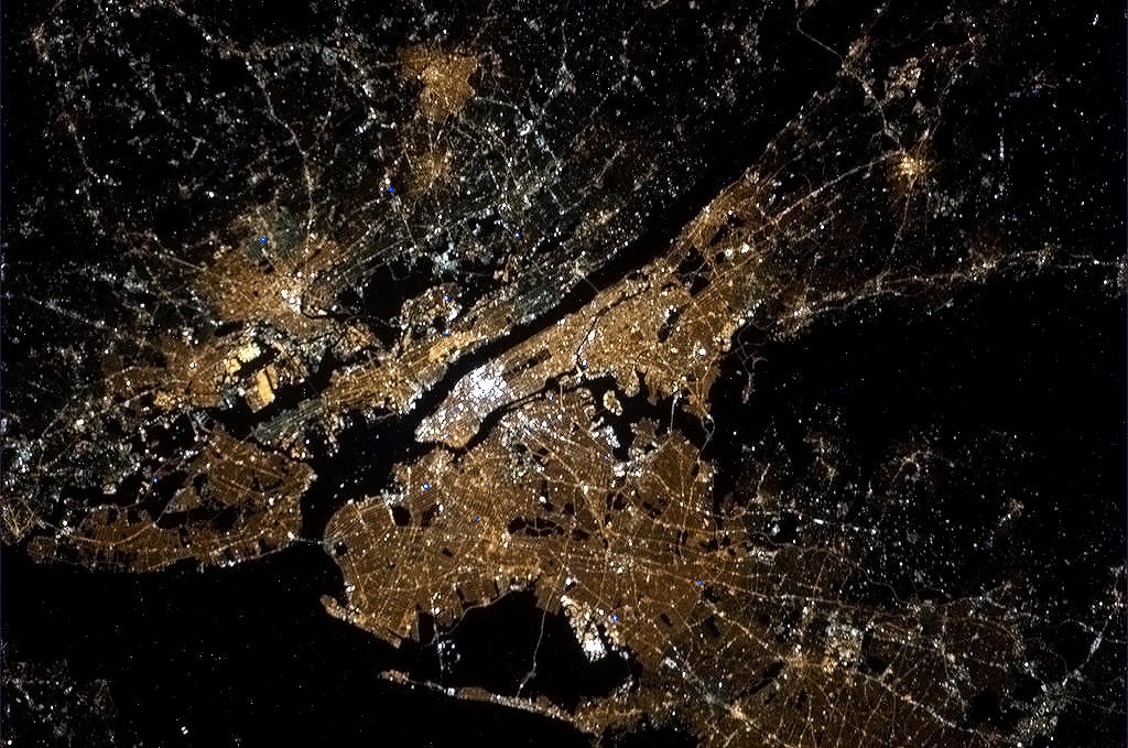 This is New York City from the Space Station. Chris Hadfield points out that Central Park is clearly visible.